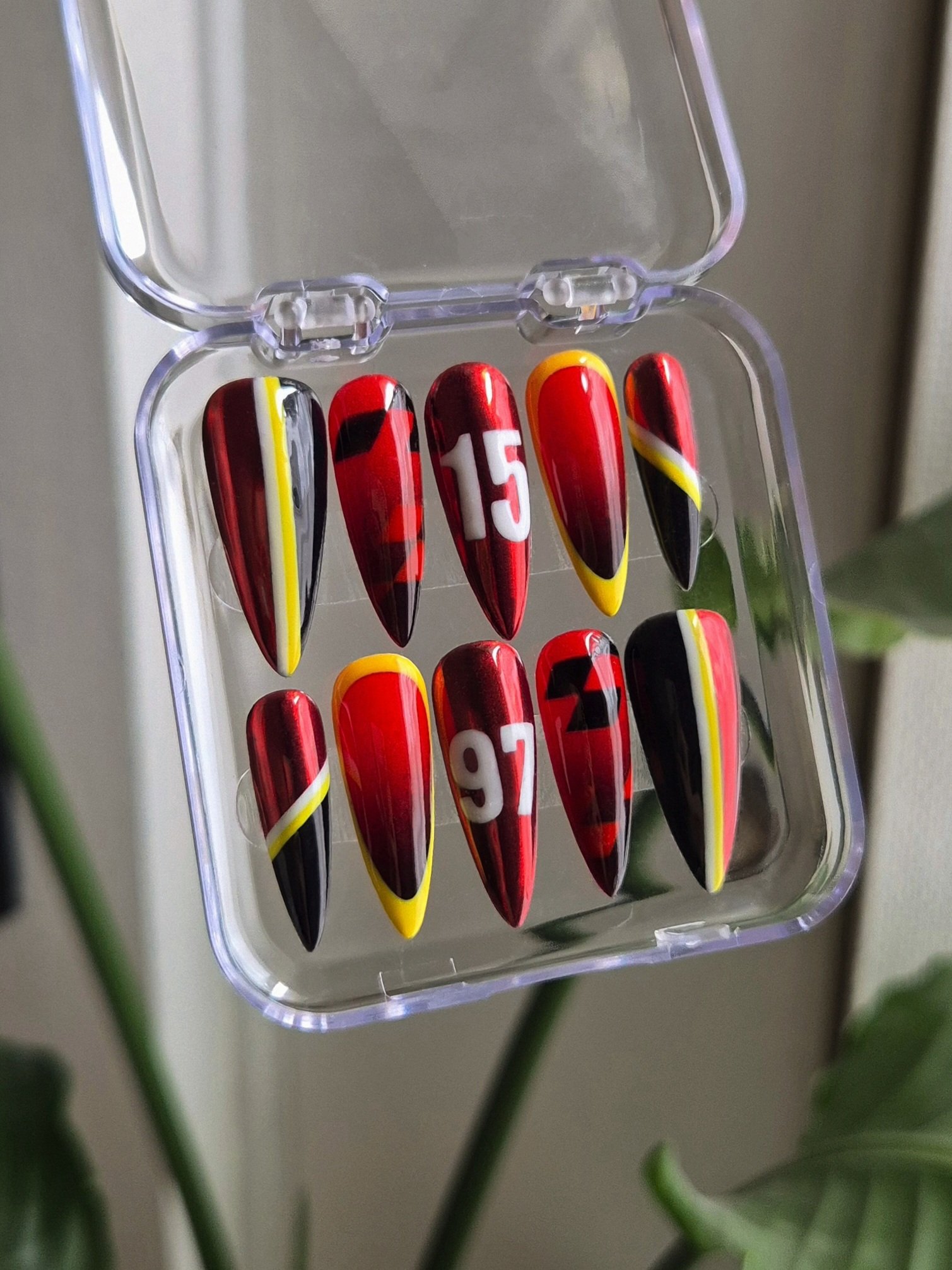 Chaque ongle joue avec des contrastes vifs et des détails dynamiques, apportant style et personnalité à vos mains.
